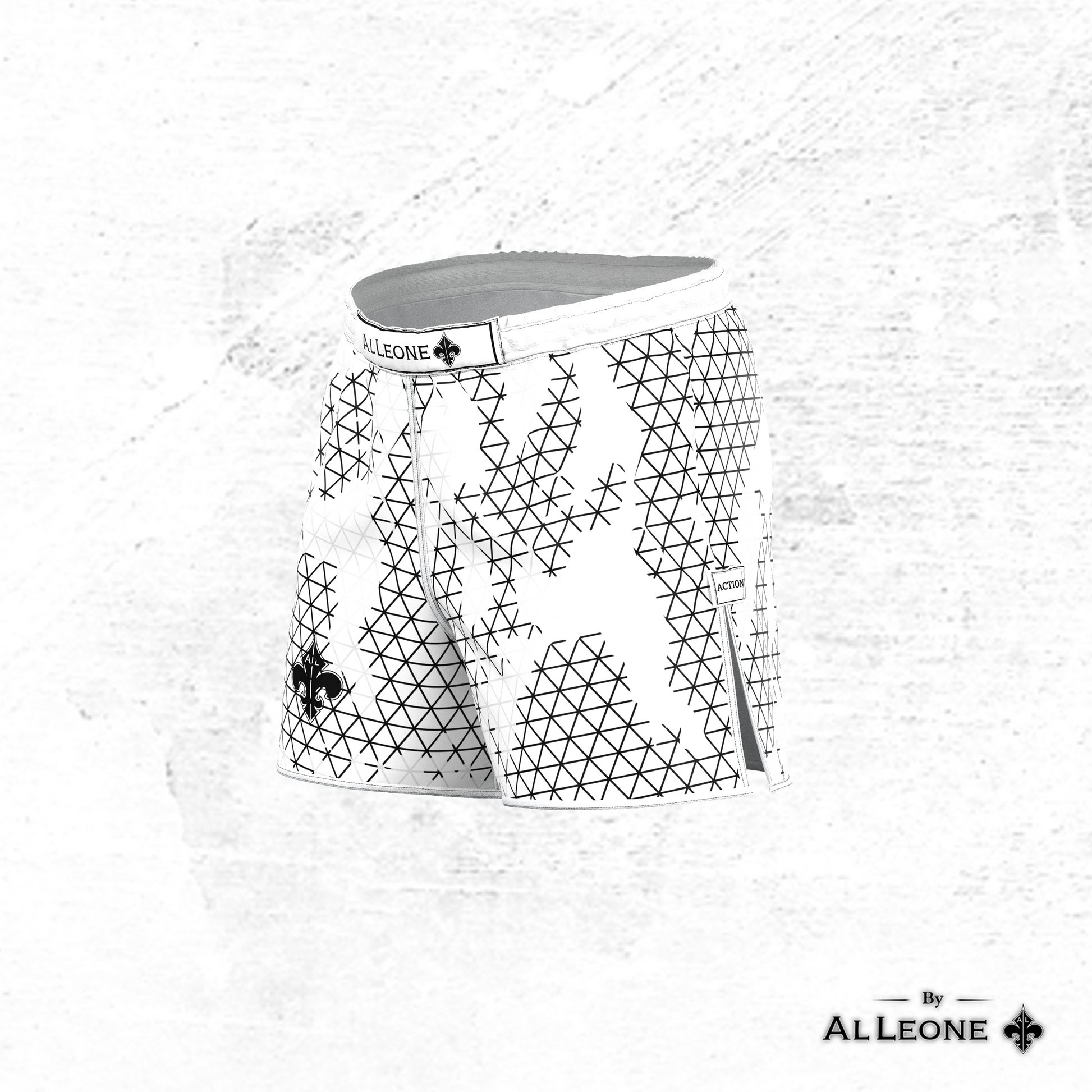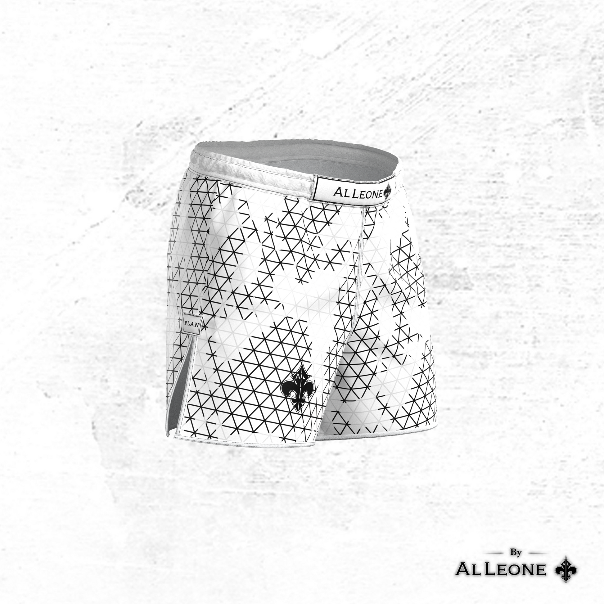 Achieve near-invisibility in these 6th sense white shorts with white AL Leone fleur-de-lis and logo. Only 30 pieces.