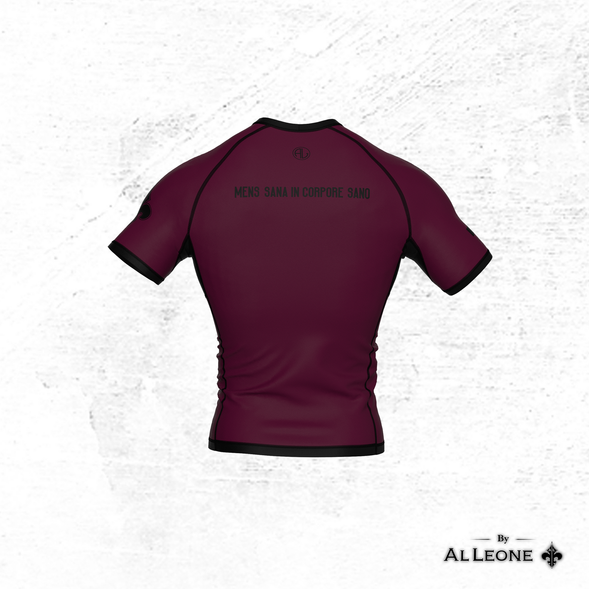 Classic dark blood AL Leone short sleeve rash guard with black trim. Strike with energy in this new fit as you hold down your opponent.