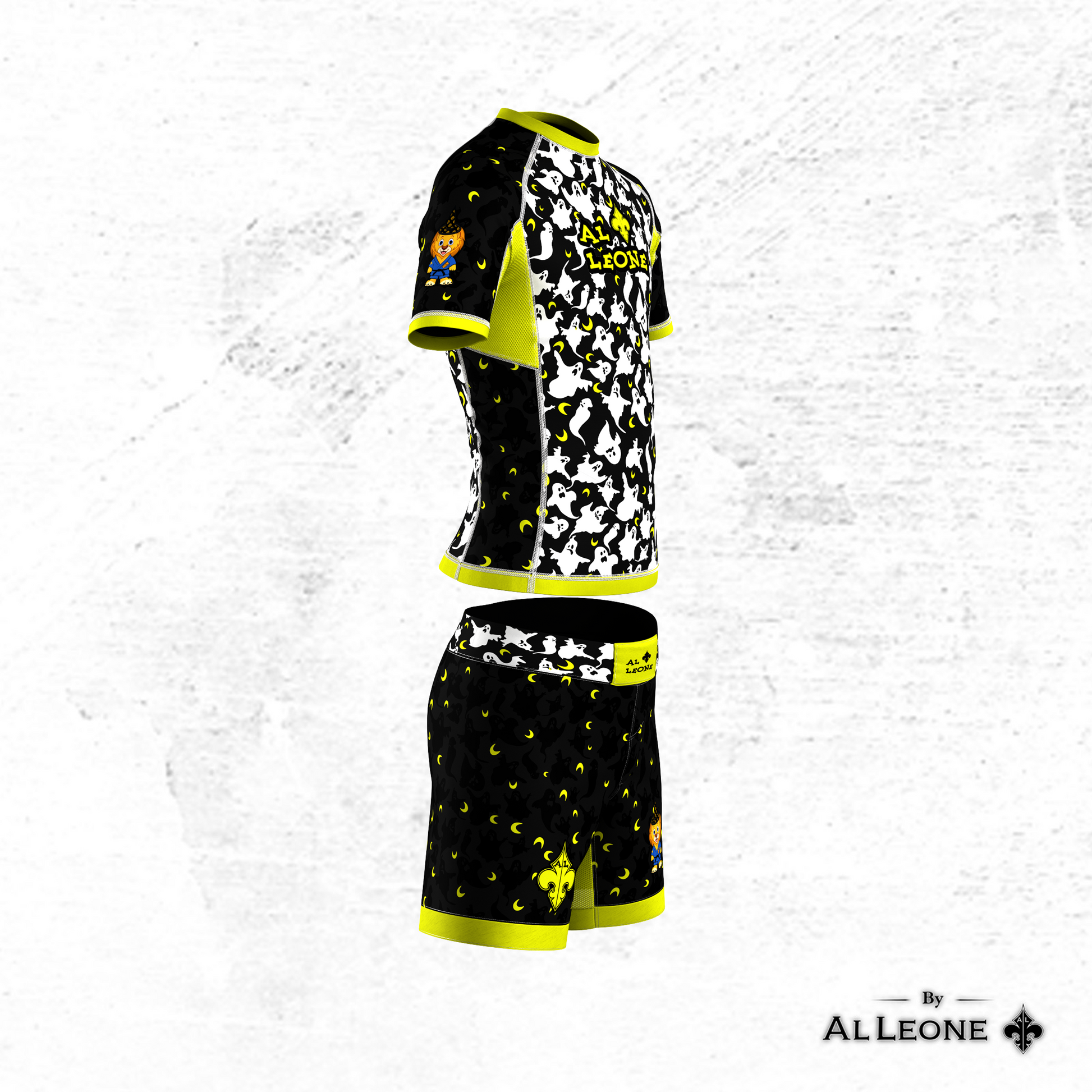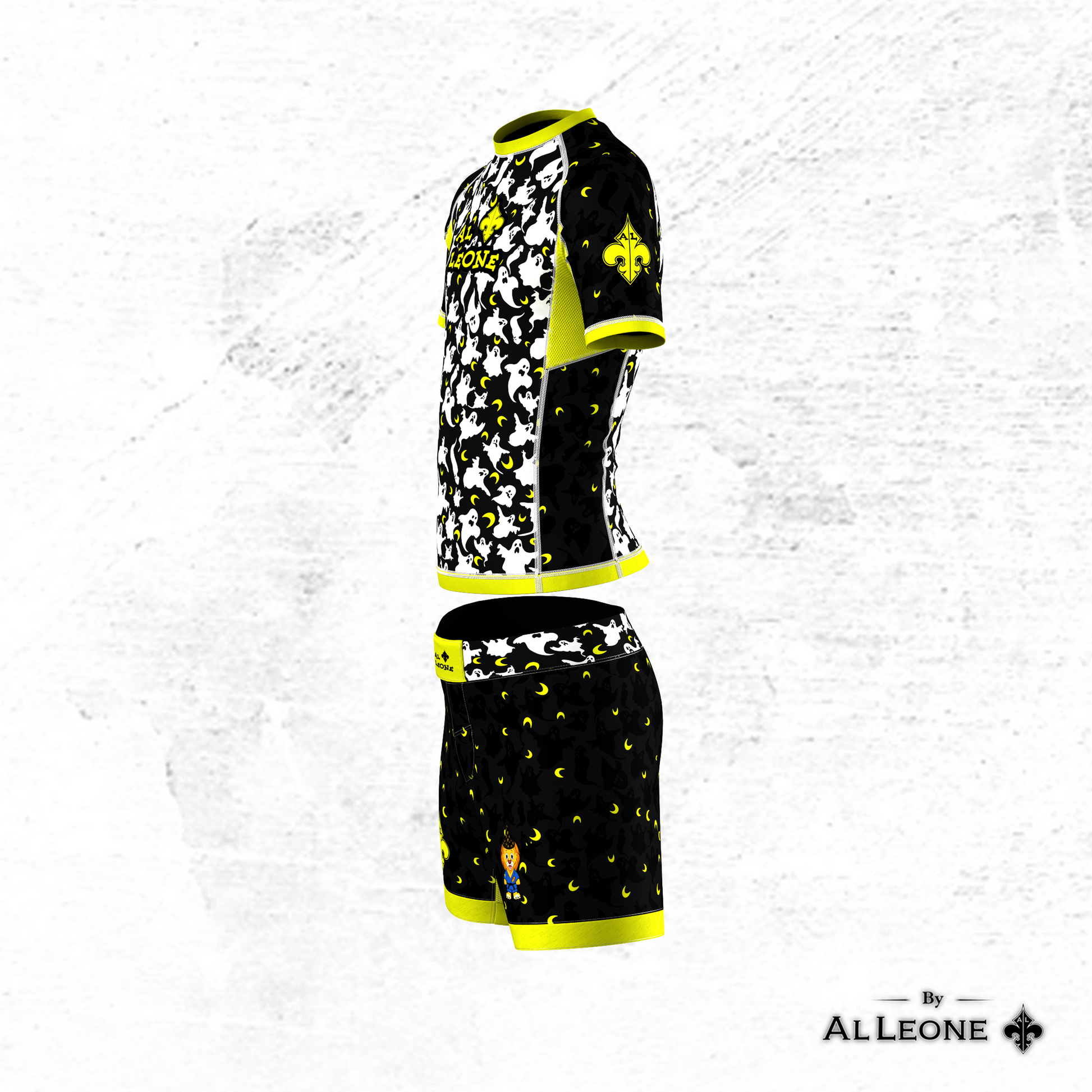 Black and yellow short sleeve jujitsu training suit, the addition of a special Halloween-themed design element will further enhance the Halloween theme