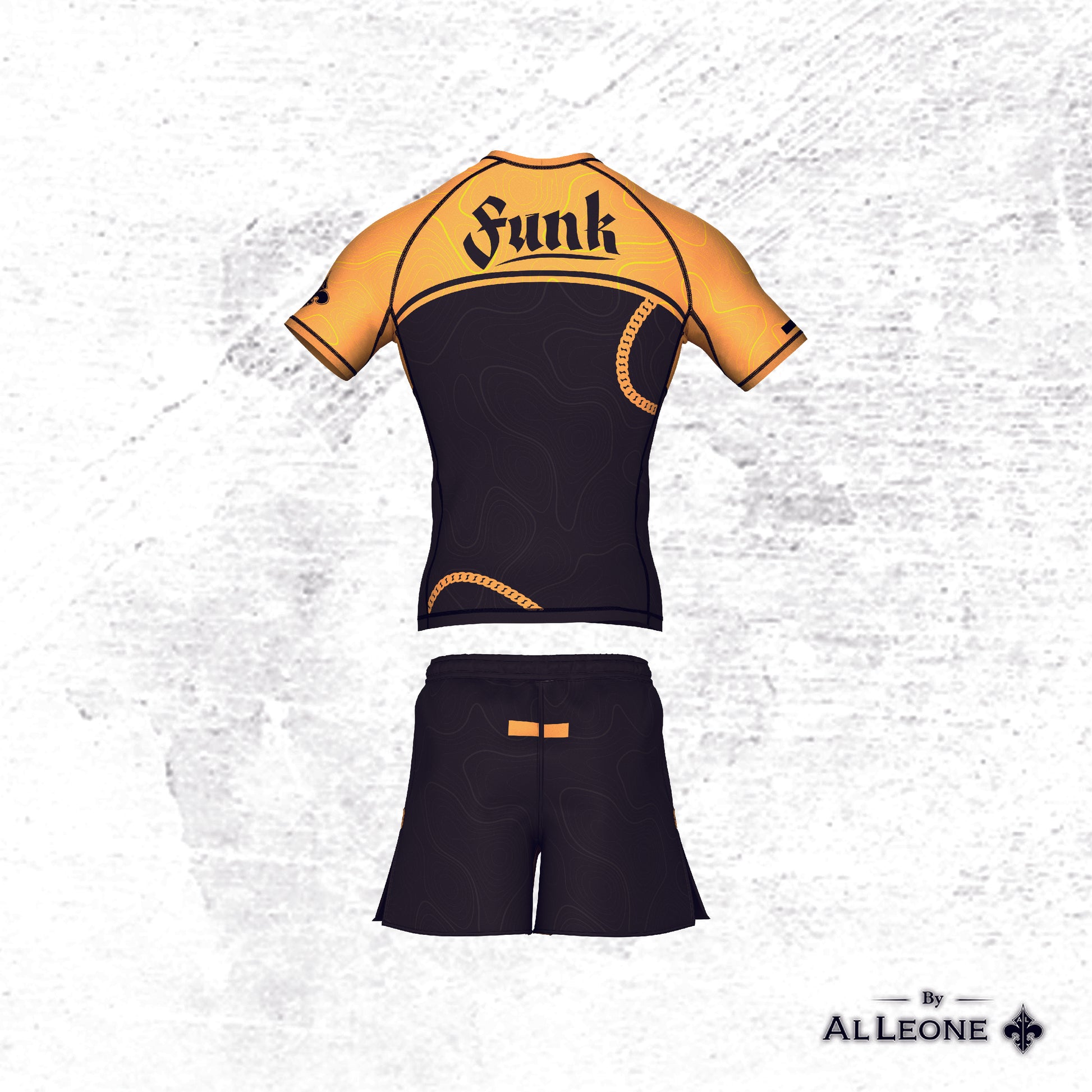 The signature look of the Funk Master — on and off the mats. Inspired by Aljamain Sterling’s love for wearing gold chains, this black-and-gold design delivers confidence and attitude in every movement. Compression support keeps you locked in through scrambles and submissions. Bring the funk. Dominate your flow.