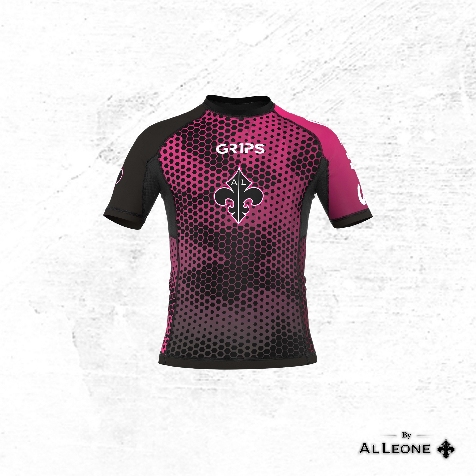 With a black and pink digital camo pattern, this rashguard reflects modern tech culture. Strong and adaptable for everyday training or matches.
